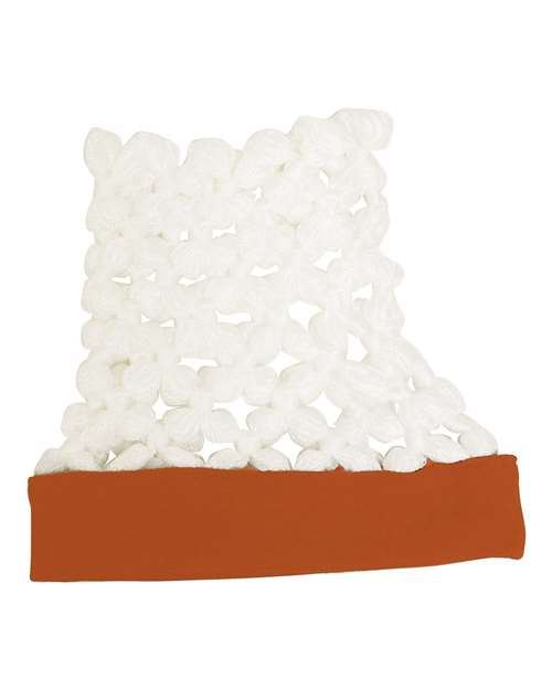 - Sweatband made from 95/5 cotton/spandex