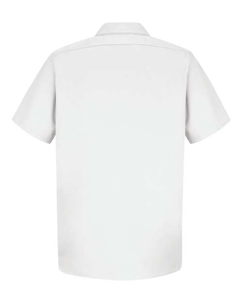 - Two button-thru, hex-style pockets with angled bartacks, bartacked pencil stall on left pocket