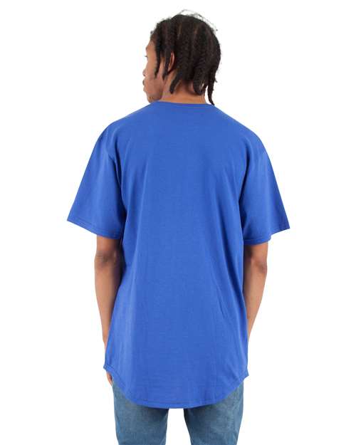 - 1" double-needle stitched sleeve and bottom hems